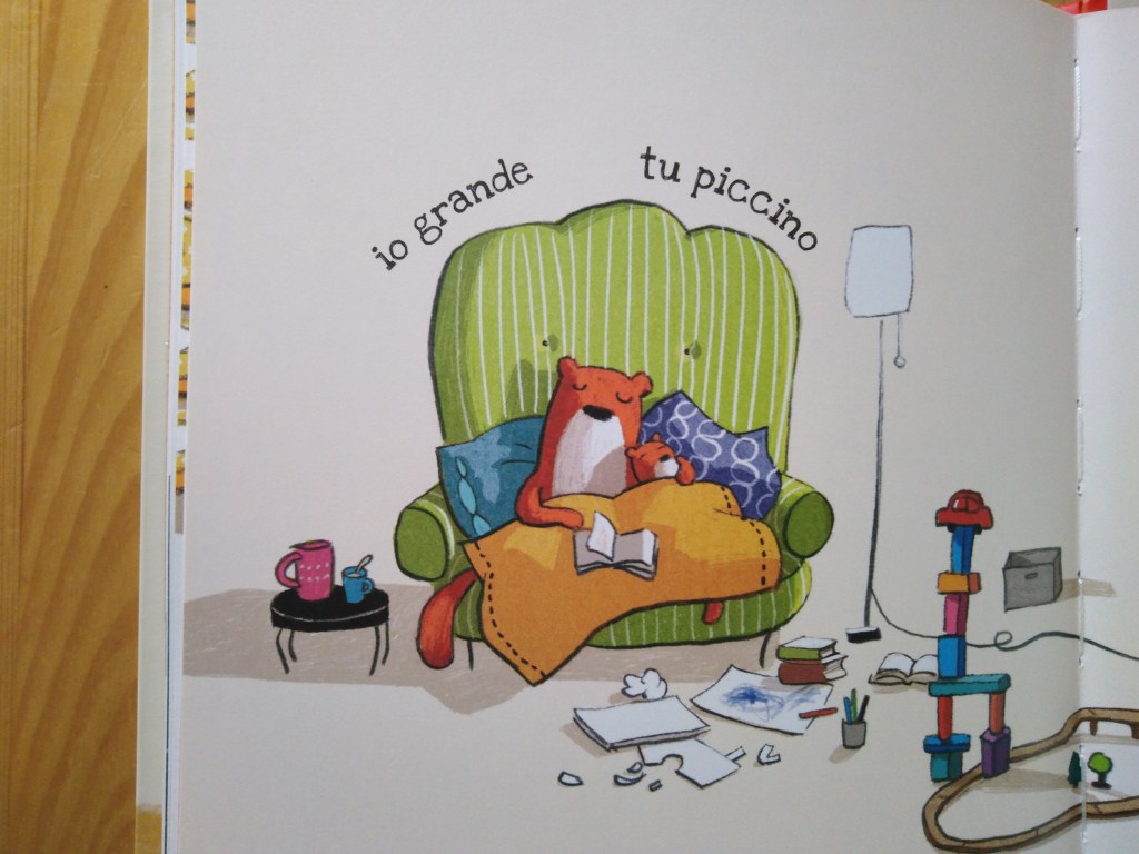 Oggi un altro spuntino di lettura, un suggerimento veloce e gustoso: vi parlo di Io grande tu piccino di Lilli L’Arronge, edito da Pulce edizioni. Un piccolo albo delizioso che ho regalato qualche tempo fa alla mia dolce metà per il suo compleanno, perchè molte delle sue pagine rispecchiano momenti della nostra quotidianità con Polpetta.