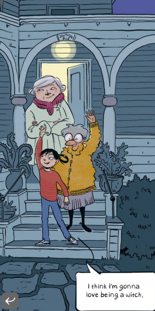 Iniziamo con un titolo fresco e frizzante, uscito nel 2020 e non ancora arrivato in Italia: è una graphic novel di Sophie Escabasse, si intitola Witches of Brooklyn ed è il primo titolo per ora pubblicato di una nuova serie. Anche se l’editore, Penguin Random House Graphic, la classifica come ‘middle grade novel’, quindi rivolta ad un pubblico dell’età delle scuole medie, secondo me è godibilissima anche da lettori leggermente più piccoli. I toni, infatti, non sono gotici nè paurosi; gli elementi fantastici si fondono gradevolmente con quelli realistici. L’atmosfera creata dall’autrice intreccia magia e scenari di vita quotidiana, con uno sguardo incline allo humour e al contempo sensibile, dando vita ad un piccolo universo dai colori brillanti, deliziosamente accogliente.