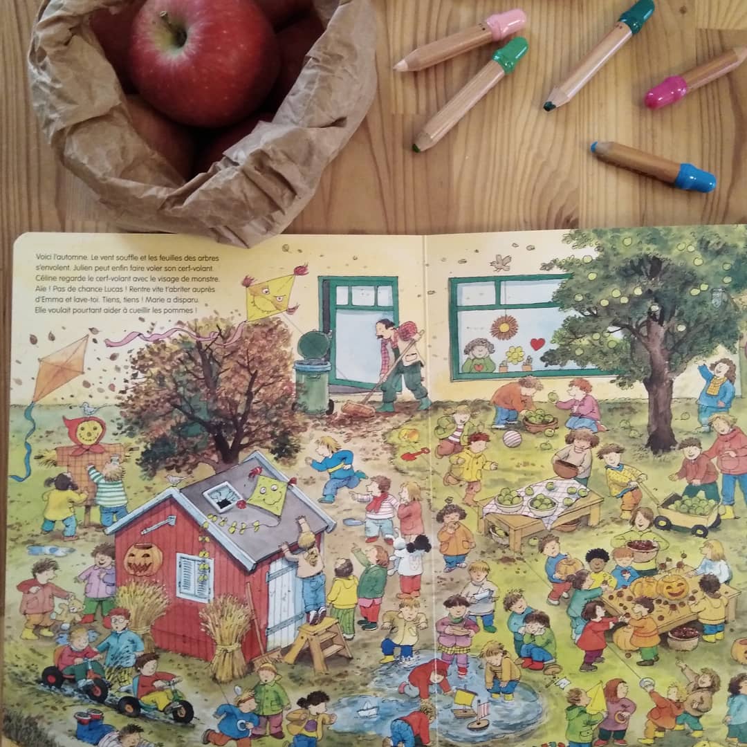 In italiano lo si trova edito nella collana Ideeali de Il Castello editore con il titolo di ‘Il mio primo grande libro – La scuola materna’. Le foto sono dell’edizione francese Ballon, che ho recuperato per quando Polpetta sarà un pochino più grande (è ancora piccola per i libri brulicanti, anche se intravedo in lei i primi segni di curiosità verso i Wimmelbuch delle stagioni di Rotraut Susanne Berner, edito in Italia da Topipittori).