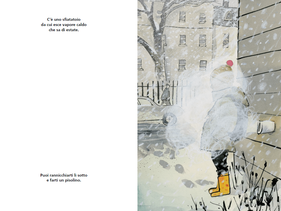 Il secondo libro di cui vi voglio raccontare è un albo illustrato che non ha a che vedere con il Natale, ma la sua atmosfera di vivido inverno urbano mi sembra particolarmente adatta a questo periodo.