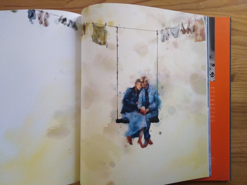Questo libro mi ha attratto in primis per lo stile delle illustrazioni; se devo individuarne una pecca, è quella che – forse proprio perchè nasce come raccolta di immagini già esistenti e non come un progetto nel quale testo e immagini siano stati concepiti e sviluppati insieme – l’elemento testo risulta più debole. Si sente che è nato a posteriori, che è il filo con cui sono state cucite insieme immagini altrimenti scollegate tra loro. Un filo, a tratti, un po’ troppo visibile. Questo non toglie, per me, fascino alle immagini, che quasi potrebbero parlare meglio da sole.