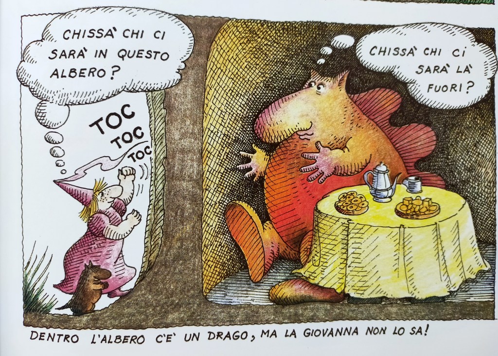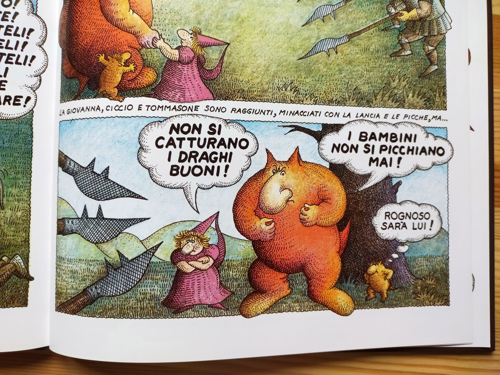 Non sarebbe preciso dire che è la fanciulla a salvare il drago, in questa storia, perchè in realtà entrambi i protagonisti (con il supporto del piccolo Ciccio) intervengono in vari modi a salvare l’altro. Sicuramente la Giovanna gioca un ruolo chiave nell’empowerment di Tommasone, ma anche lui è pronto a difenderla.