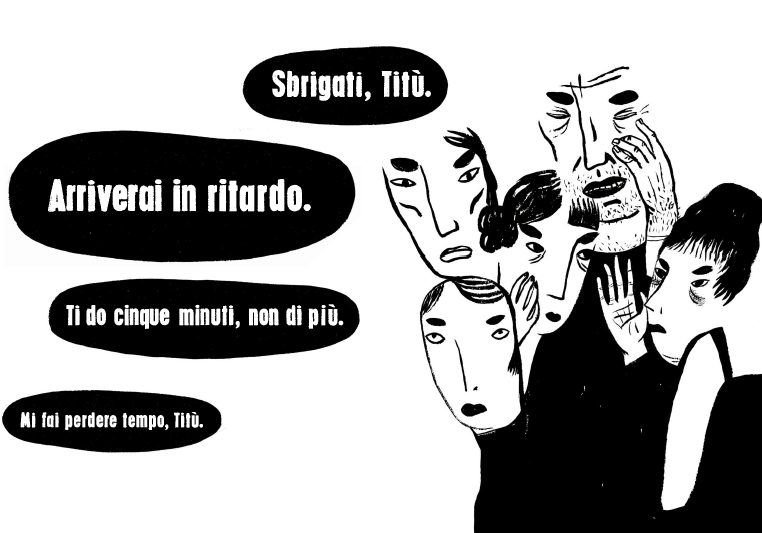 Anche il tempo è al centro del conflitto, di un’insanabile incomunicabilità con il mondo adulto. Sbrigati, Ti do cinque minuti, non di più, mi fai perdere tempo sono il leit motiv delle giornate. Titù vive, forse ancora di più di altri bambini, nel suo tempo, anni luce dal tempo produttivo e iper organizzato che domina l’esistenza degli adulti e che loro si illudono di stare dominando.
