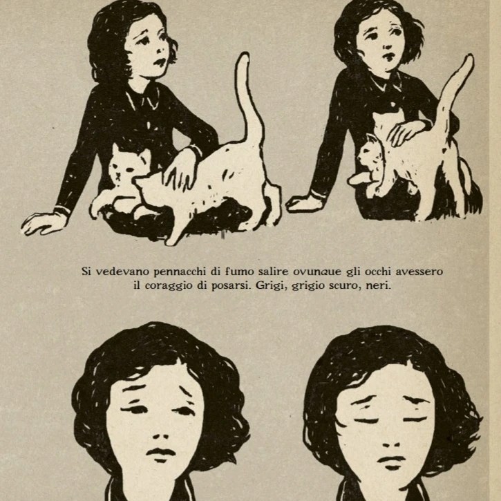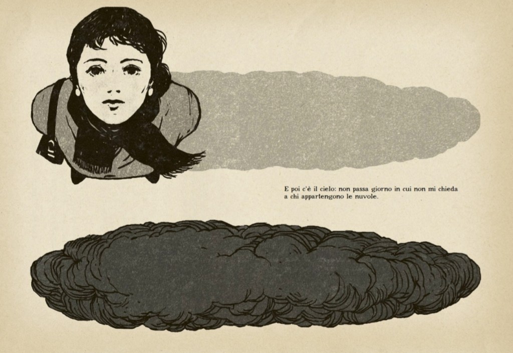 Un albo illustrato, A chi appartengono le nuvole, di Mario Brassard e Gerard DuBois, edito da poco da Orecchio acerbo. Un albo onirico, dalle tinte che su fanno sempre più cupe per poi stemperarsi, ma non troppo. Angosciante, come è giusto che sia un’opera che cerca di catturare la difficile relazione con i ricordi e con il passato di una persona che ha vissuto la guerra sulla propria pelle. Una vecchia foto è, per la protagonista e voce narrante, il punto di contatto con la se stessa di 9 anni. Mila attraversa con inquietudine, tra il sonno, la veglia e vividi sogni gli ultimi, febbrili giorni prima di abbandonare la sua casa per sfuggire alle bombe sempre più vicine. Respiriamo con lei la paura, un senso di oppressione, l’apprensione fin troppo adulta per il futuro incerto che la aspetta.