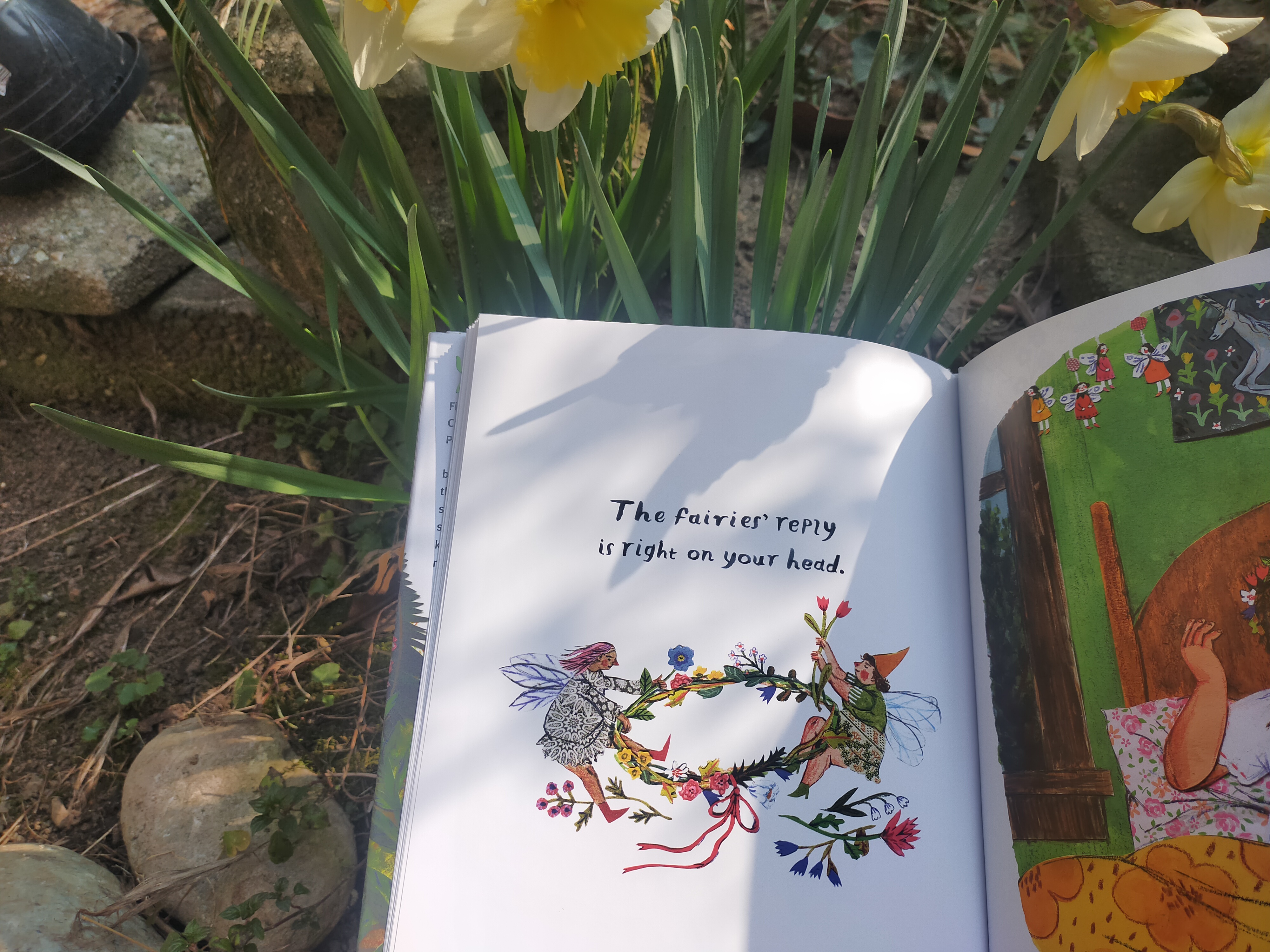 La bambina cerca e cerca, avventurandosi anche di notte nel folto del bosco per seguire una strana musica. Ma le fate, il lettore lo vede sfogliando le pagine, rimangono sempre a un passo da lei. Dietro l’angolo, nascoste ma amichevoli, compiaciute delle attenzioni della piccola umana, alla quale lasciano piccoli regali. La magia è letteralmente dappertutto, tutto intorno alla bimba che ne è affascinata e la cerca, sensibile a questa dimensione altra nella quale non riesce del tutto ad entrare, ma che percepisce come vicina, quasi a portata di sguardo e di dita.