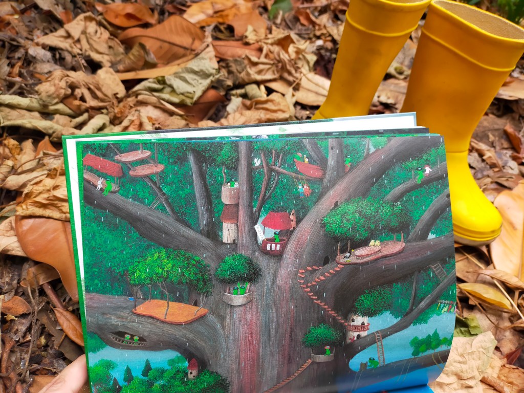I luoghi conosciuti si trasfigurano e rivelano sorprese, lasciando spazio allo stupore e alla scoperta. Le illustrazioni ci trasportano in un mondo dai verdi e blu intensi e vellutati, ricco di dettagli delicati e incantevoli sulla soglia tra la dimensione della quotidianità ed un’altra, magica, che si può scoprire solo nei giorni di pioggia.