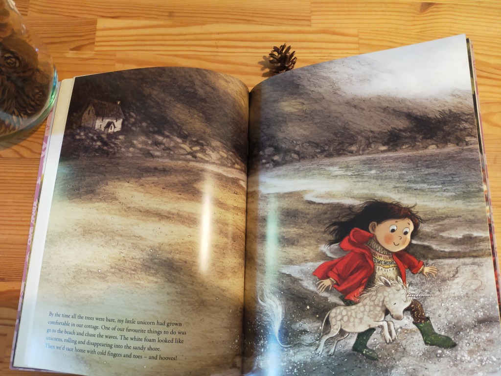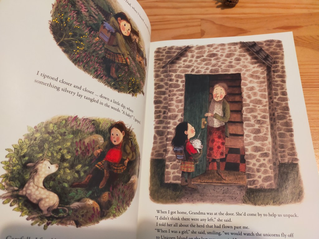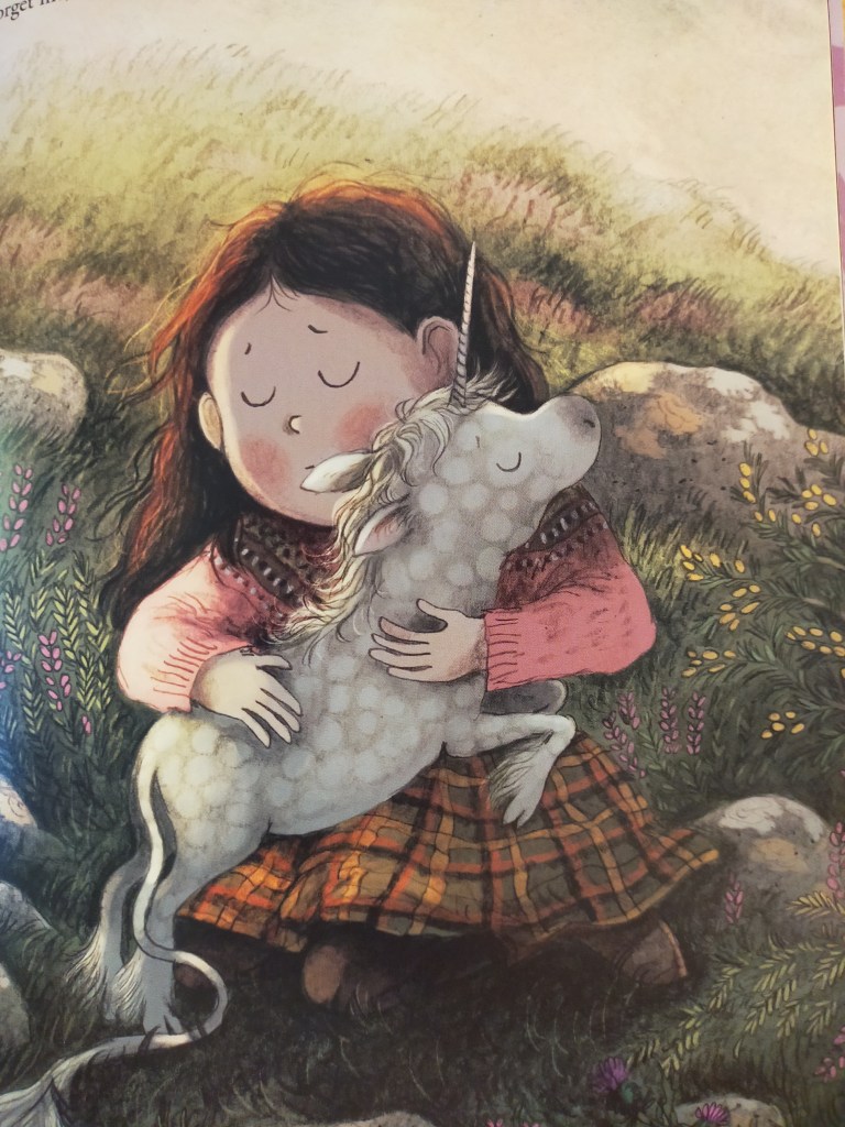 Elettrizzata, sta correndo verso casa per raccontarlo, quando sente un lamento arrivare da un cespuglio. E lì, intrappolato tra i rovi, eccolo: un cucciolo di unicorno, spaventato per essere rimasto indietro. Margaret corre a casa, e qui scopriamo con piacere che gli adulti di questa storia sono personcine ragionevoli e collaborative.