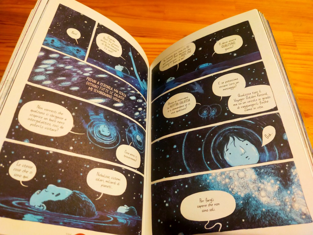 Un romanzo a fumetti godibile dai 9-10 anni fino a molto più in su (ma anche più giù, naturalmente, dipende sempre da che lettrice o lettore avete davanti).