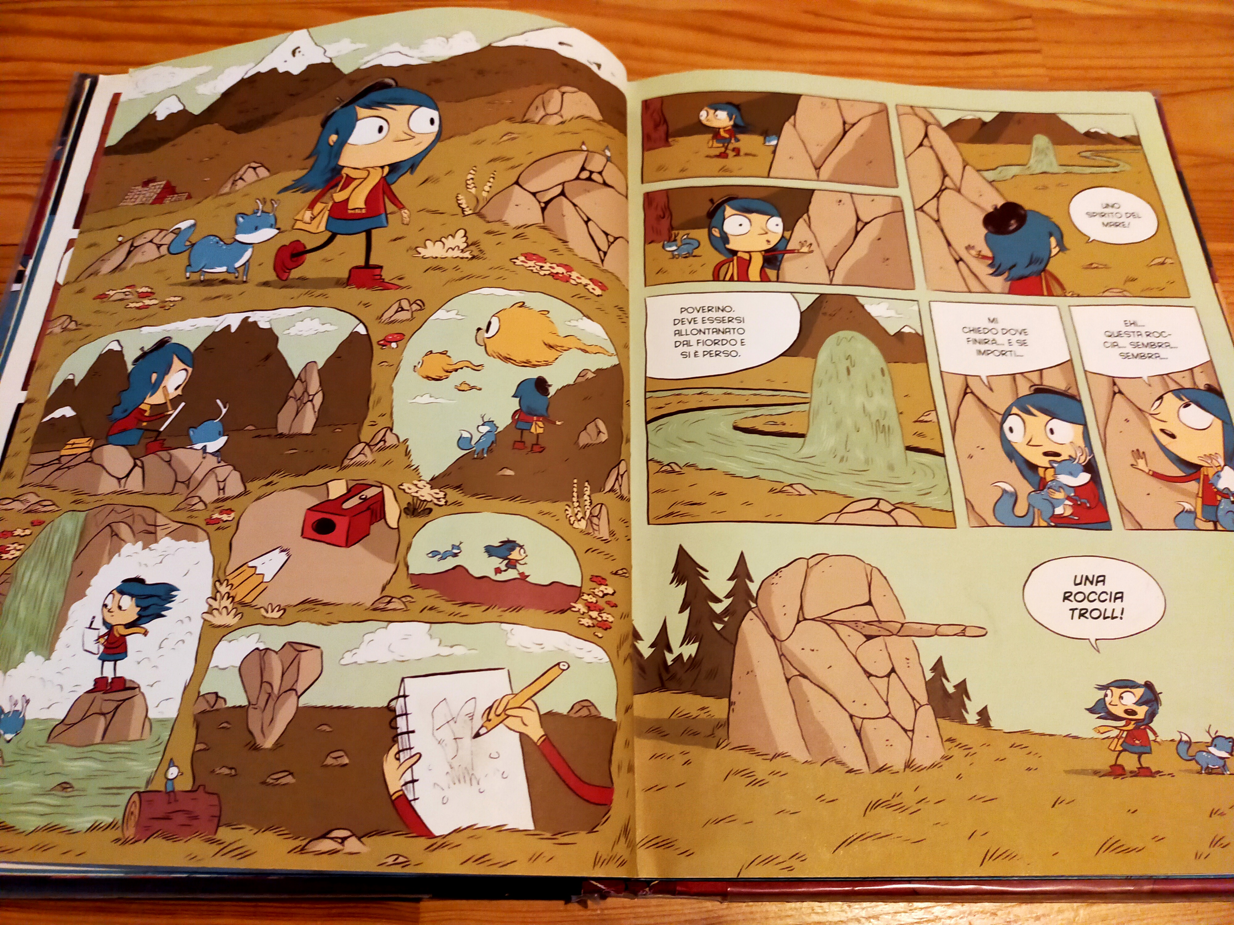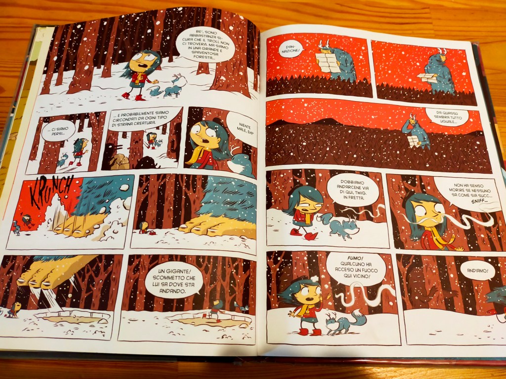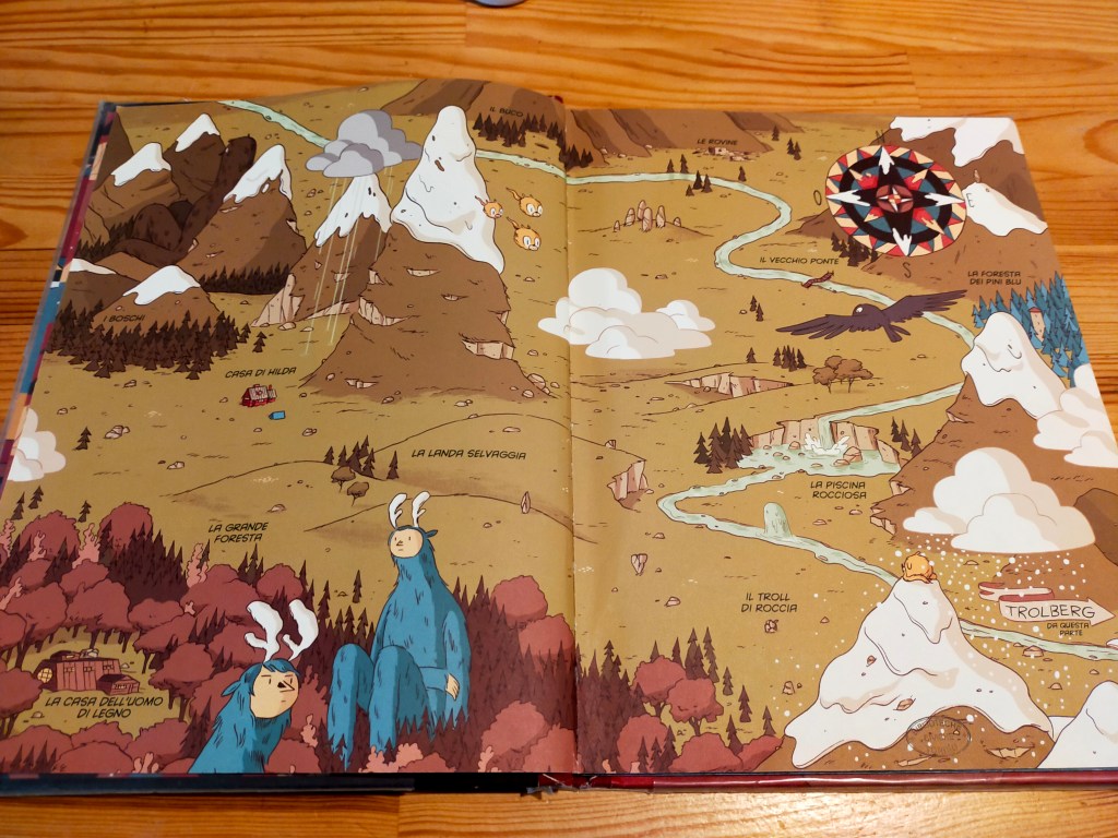 Essenzialmente fino al trasferimento a Trolberg Hilda vive un’infanzia idilliaca. Non è per niente entusiasta del trasloco, ma la mamma pensa che potrebbe farle bene farsi anche degli amici umani. Neanche si immagina la quantità e, come dire, selvaticita’ delle avventure che ancora aspettano la figlia in questa nuova fase della loro vita! Diciamo che, per quello che ho intravisto dei volumi successivi, la sua bambina non starà a lungo lontano dalle foreste e dai troll.
