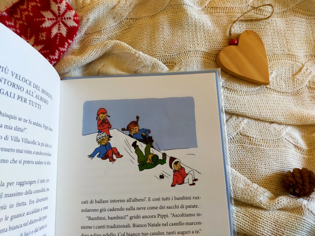 Una ricerca di indizi nella neve, un albero carico di dolcetti, torte alla panna e cioccolata calda, un tetto-slitta da cui scivolare: quella di Pippi è sicuramente la festa di stagione a cui Polpetta vorrebbe andare, e io pure.