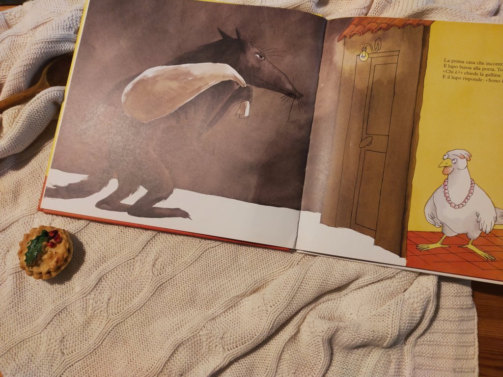 Un lupo forse vegetariano, una gallina curiosa, dei vicini di casa solleciti e ancora più curiosi, una geniale ‘truffa’ che si trasforma in una squisita cena in compagnia vicino al fuoco sono gli ingredienti principali del successo di questo evergreen.
