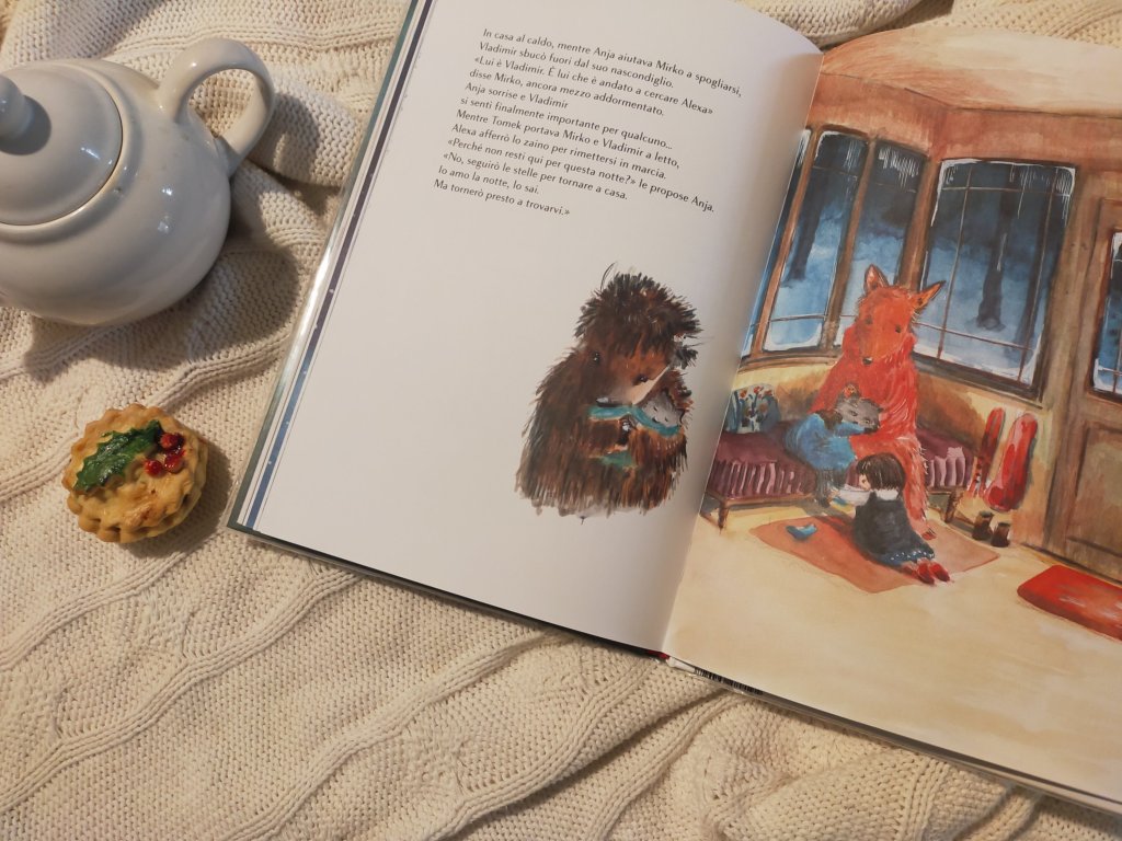 Un racconto d’inverno pieno di fascino e calore. Un gruppo di amici, che ha intrapreso un lungo viaggio, sta finalmente per arrivare a destinazione: Zak, Emil e Tomek (quanto apprezzo che i protagonisti animali abbiano un nome proprio anziché chiamarsi Orso, Volpe,ecc!) sono pronti a riabbracciare la loro amica Anja.