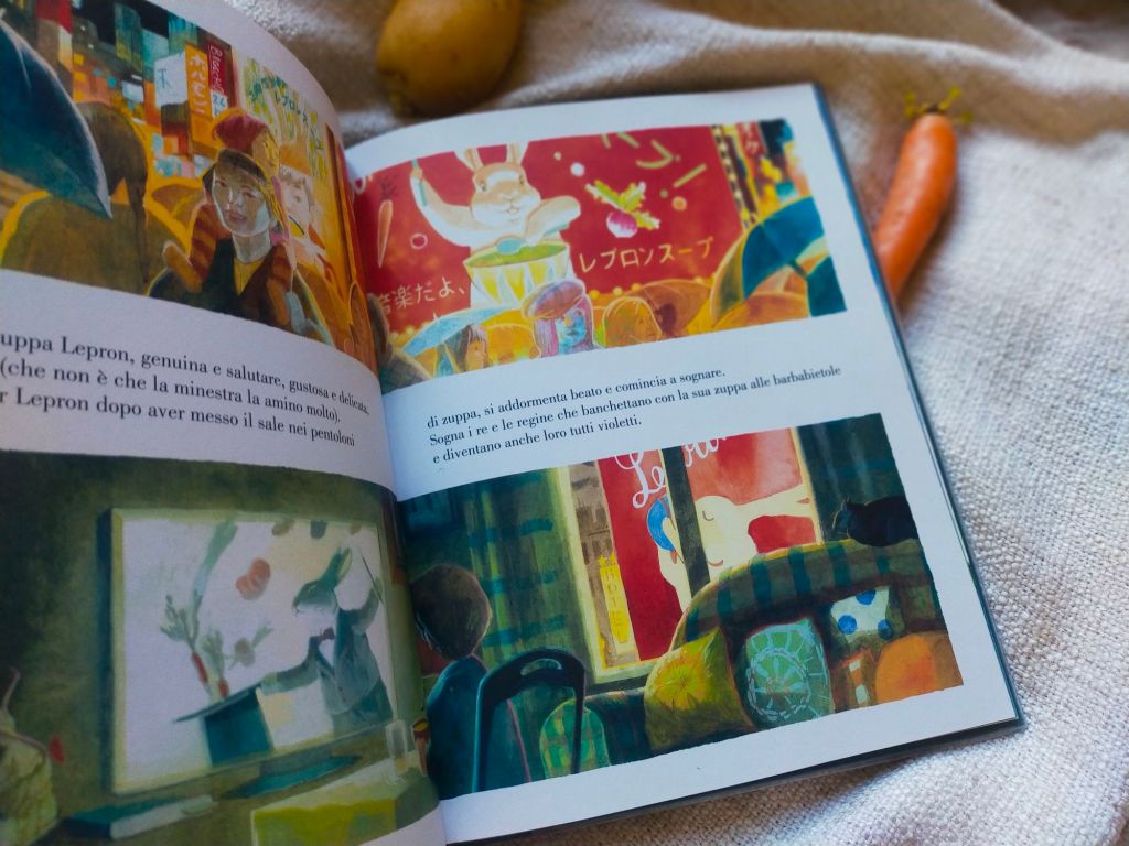 È una zuppa semplice ma buonissima, la cui preparazione coinvolge tutta la sua famiglia, che lo aiuta a raccogliere gli ortaggi. Per diventare così buona, però, la zuppa ha bisogno di pace e silenzio, quelli che Lepron ottiene scacciando, ad un certo punto, il parentado dalla cucina. Rimasto solo con la pentola speciale tirata fuori per l’occasione, mette su le verdure a cuocere e poi si accoccola su una poltrona a schiacciare un pisolino. E sogna. Fa dei sogni vividi e visionari, e nel frattempo – forse proprio per quel tempo calmo e quel sognare – la zuppa cuoce e diventa squisita.