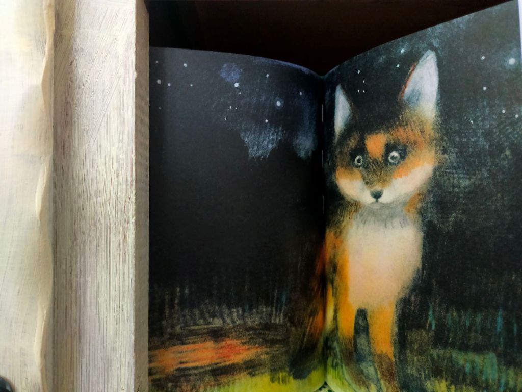 Ha lo sguardo di una bambina, una bambina che viene da un altro tempo, uno sguardo attento e capace di intercettare e capire in profondità quello del piccolo protagonista. Sarà proprio lei, passando simbolicamente nel fuoco di questo camino-portale, a regalare al suo amico un po’ di calore e leggerezza.Scintilla arriva, non si sa come, per aiutare Antonio ad attraversare questo tempo inquieto, e a portargli un messaggio luminoso.