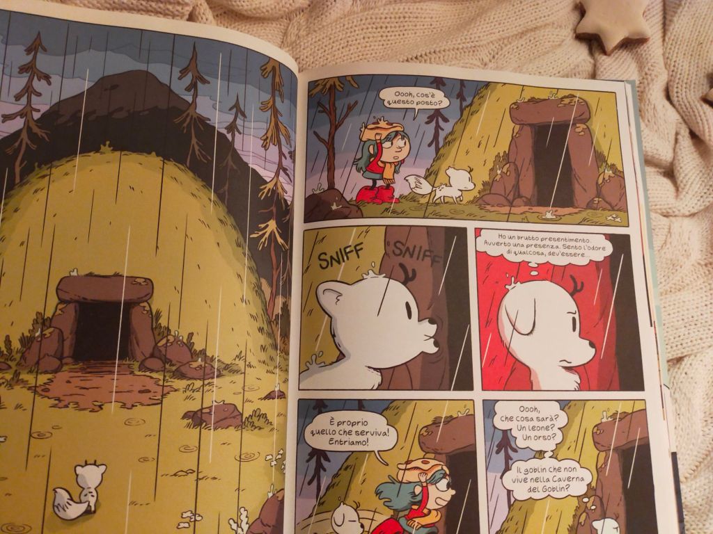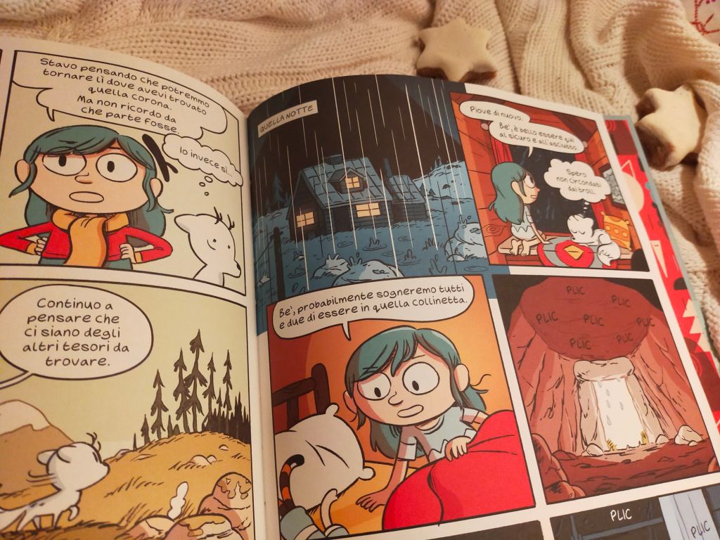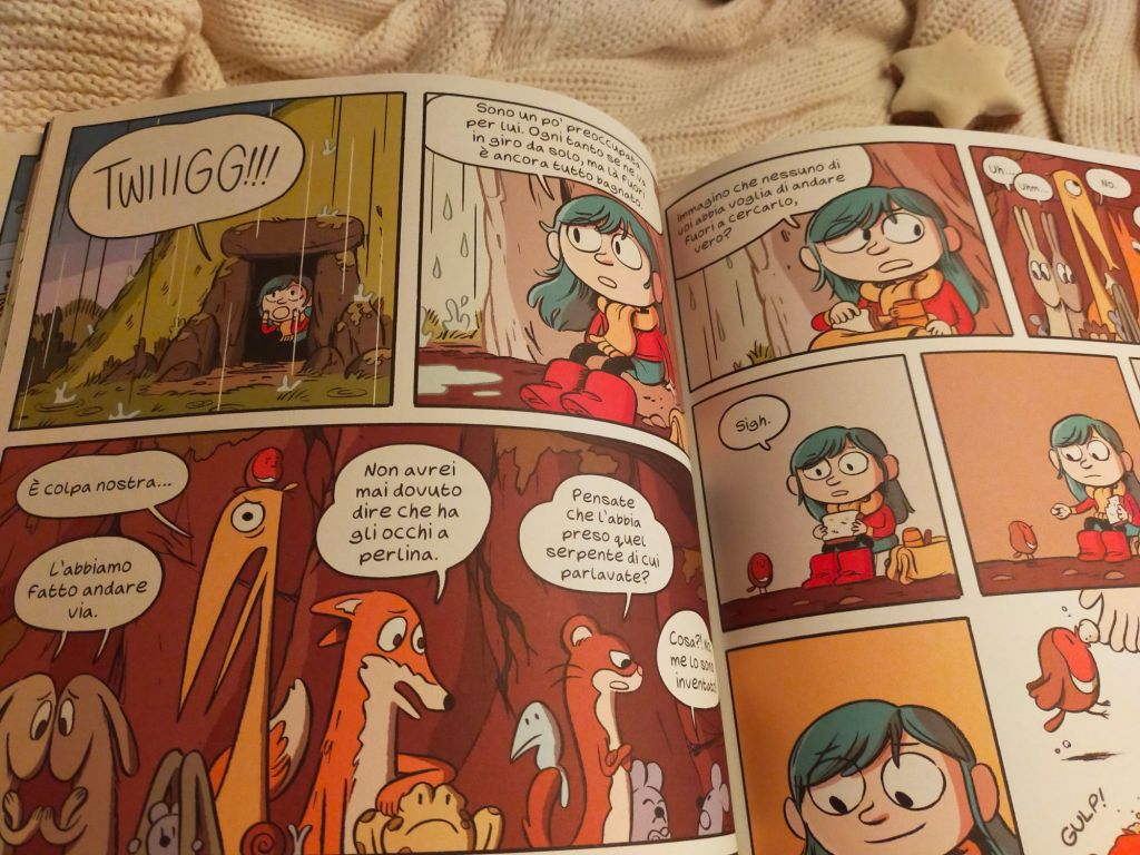 Questa volta, le strade di Hilda e Twig per un po’ si separano, e Pearson ci porterà a conoscere meglio il piccolo cervolpe, come in uno studio del suo personaggio. Twig si è sempre considerato poco coraggioso, ma qui lo vedremo – e anche lui imparerà a vedersi – in una luce diversa. Allo stesso tempo, chi ha già letto i volumi della serie potrà trovare, tra queste pagine, una sorta di tenero sguardo all’indietro, osservando le dinamiche tra Hilda e Twig in una fase precedente della costruzione della loro relazione.