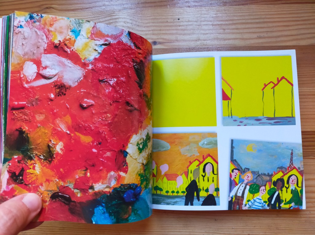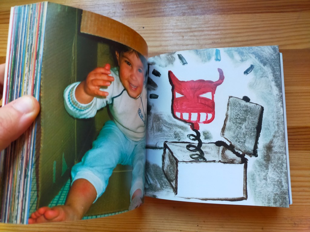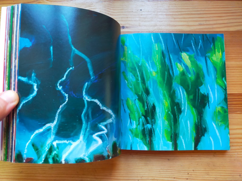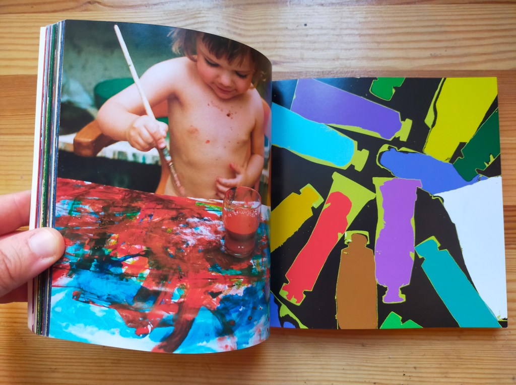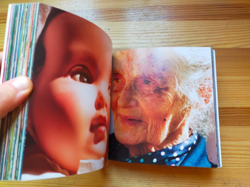 Quello che ci troviamo tra le mani è un libro senza parole, compatto ma corposo – sono 256 pagine – che si può leggere in tutte le direzioni e iniziando da qualsiasi punto. Tra le sue pagine, un’alternanza di tecniche eterogenee (dalla fotografia alla pittura, dall’illustrazione alla scultura con pupazzi di cartapesta, per citarne solo alcune) ci guida, se vogliamo, ad esplorare sequenze di immagini che si fondono l’una nell’altra, unite da dettagli che si trasformano, si espandono, mostrando altre possibilità.