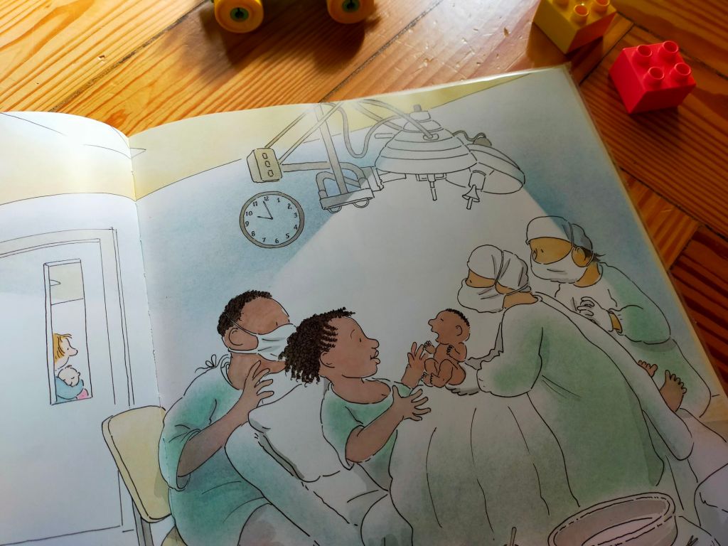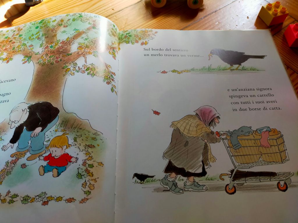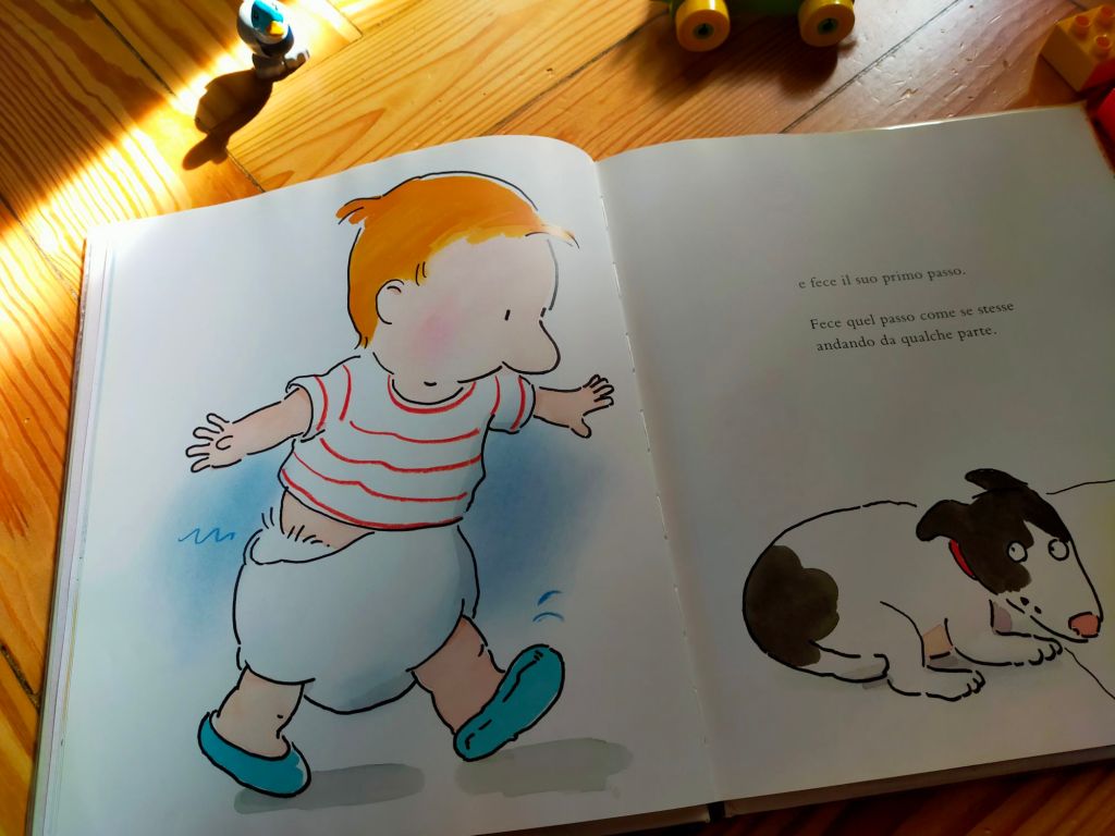 Una prima cosa, quotidiana e al contempo unica e sorprendente, succede proprio nel soggiorno, sotto lo sguardo di Giulia. Il suo fratellino Leo (Jonathan nell’originale) si sta preparando a muovere il suo primissimo passo.