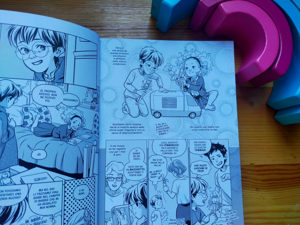 Lucio, però, è anche un bambino che sa coltivare la gioia: quando gioca alle Barbie con la sua migliore amica, quando disegna, quando si appassiona alle avventure delle guerriere Sailor e sogna di diventare un fumettista.