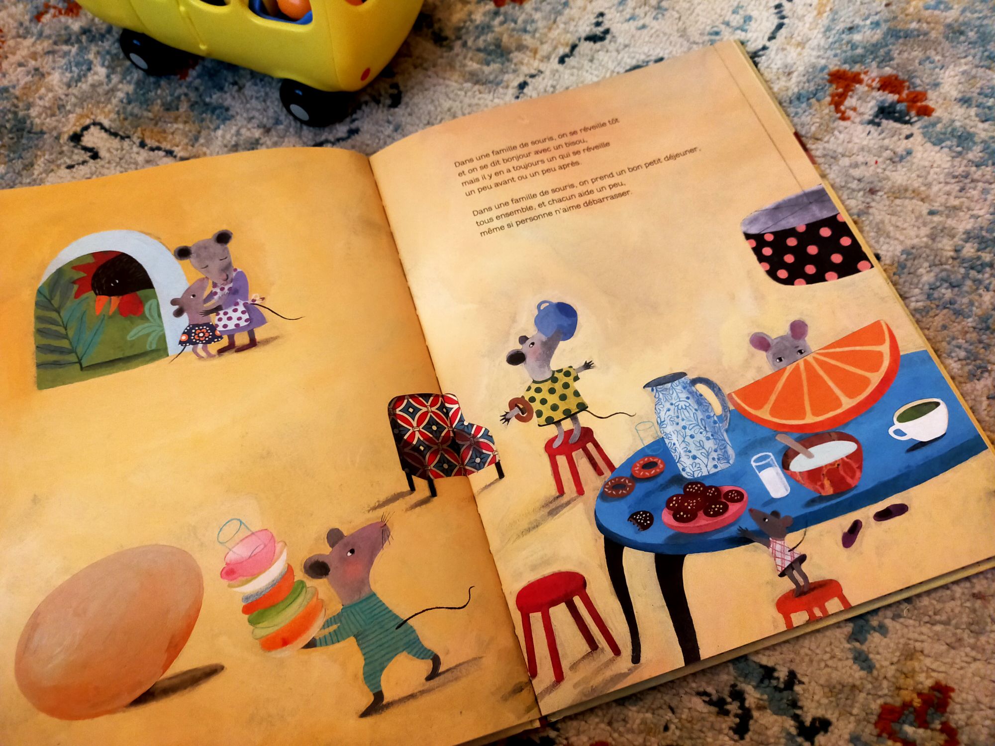 In una famiglia di topi, delle favolose Giovanna Zoboli e Simona Mulazzani, ci fa affacciare dietro le quinte di una famiglia alquanto numerosa, che vive in un accogliente caos. Un caos solo apparente, mosso da una sorta di armonia interna. È una comunità eterogenea nella quale ci sono spazi e tempi comuni, ma in cui si respira, perché c’è anche apertura verso l’esterno e consapevolezza della necessità di avere un angolino e del tempo tutto per sé. Al mattino si va fuori nel mondo, si fanno cose diverse e spesso si sta bene bene anche lontano da casa. Perché ogni topo e topa porta il suo valore a scuola, al lavoro, nella città. E alla sera è caotico, ma lo stesso bello ritrovarsi, in quella casa con quell’odore particolare, dentro routine calde e rassicuranti, tra bisticci, corvée, patate da cuocere, fiumi di chiacchiere e un lettone in cui accoccolarsi vicini, alla fine.