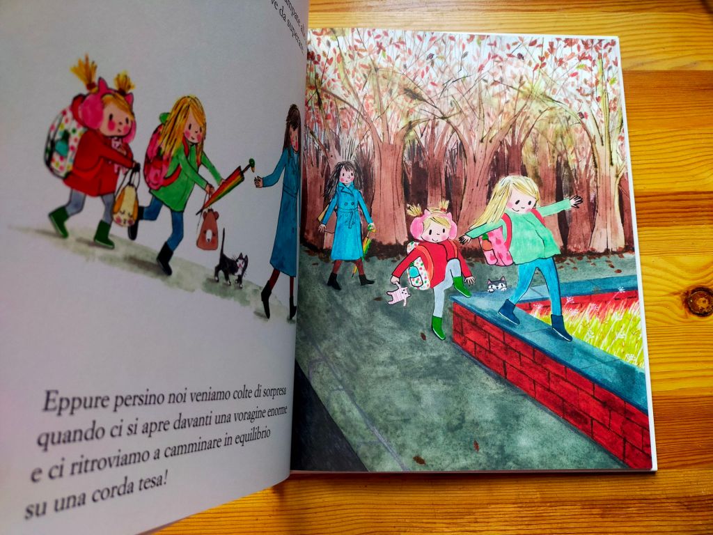 È un libro che celebra silenziosamente una vita piena di brusio, rumori e voci (o forse di miagolii), di incontri e pomeriggi passati in compagnia, col sole, con la pioggia o la neve. Di quella “normalità” che qualche anno fa ci era stata drasticamente preclusa e che appare ancora più un privilegio pazzesco (a noi adulti) se pensiamo a chi sta perdendo la casa e tutto il mondo che c’era intorno.