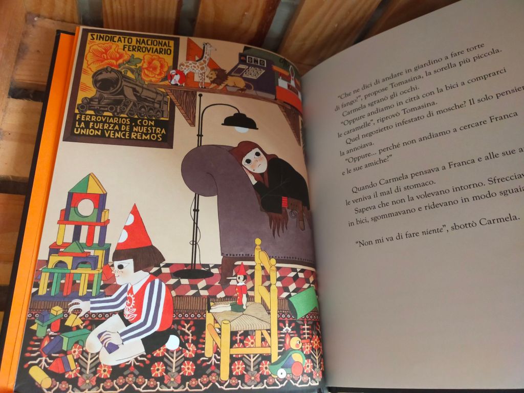 Questo secondo volume, sempre edito in italiano da L’ippocampo edizioni, è focalizzato su Carmela, la sorella di mezzo,che ritroviamo in un pomeriggio di noia. Troppo grande per immergersi pienamente nei giochi con la sorella minore, troppo piccola per essere inclusa nel nuovo gruppo di amiche della sorella preadolescente, che la prendono in giro, Carmela si sente né carne né pesce, arrabbiata, sola e triste.