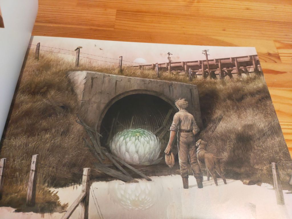 Le tavole dai toni seppiati di Pinfold sembrano fare dispiegare davanti ai nostri occhi le scene di un film fantastico. Una coppia anziana vive in una piccola fattoria ai piedi di una ferrovia, in un’area che emana vibrazioni decadenti tardo industriali.