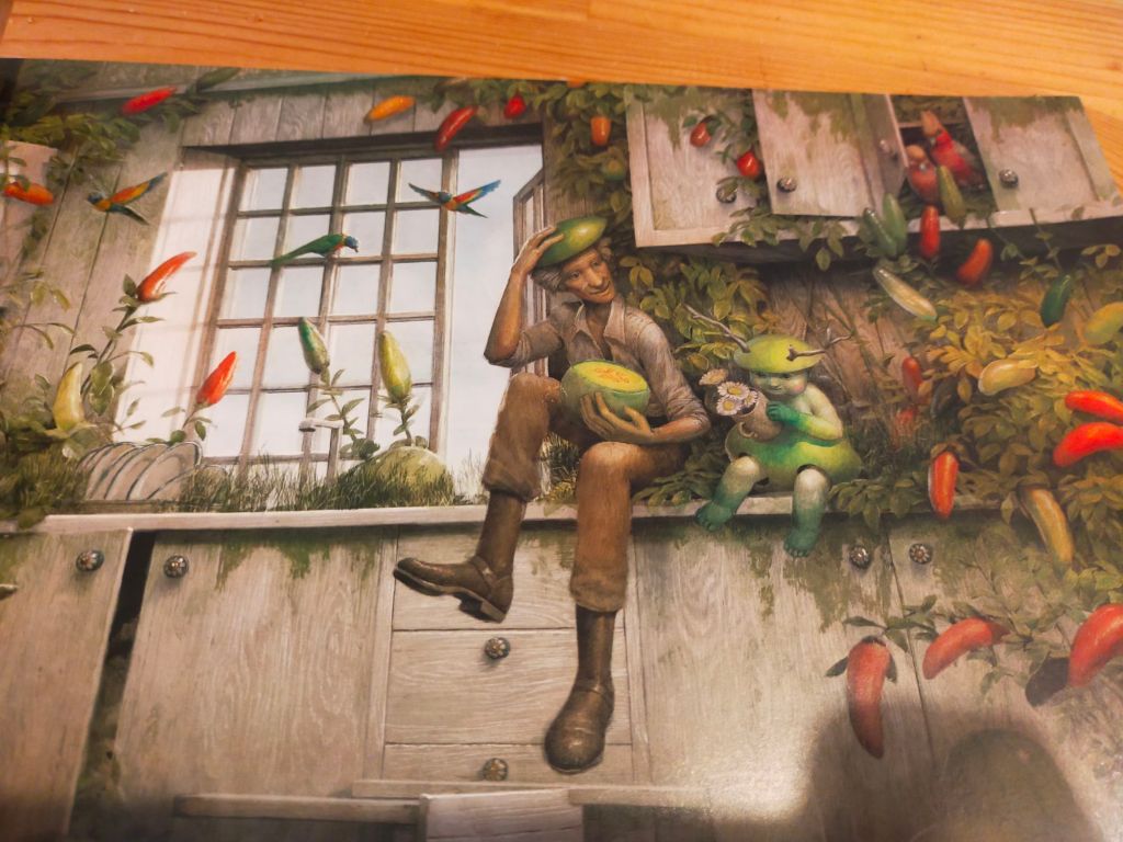 Quest’opera di Levi Pinfold, autore, tra altri titoli, di Cane nero e de La diga, è arrivata nel 2016 e al momento è fuori catalogo. Le foto che vedete qui sono dell’edizione inglese, dal titolo Greenling (Templar Publishing).