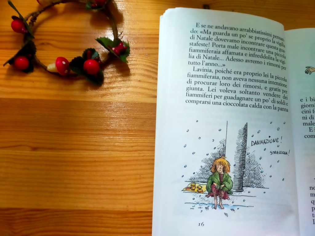 di Bianca Pitzorno – mio mito vivente. Anche Lavinia rivisita, in chiave sovversiva e anticonformista, la fiaba di Andersen. Sola al mondo in una Milano gelida, la piccola fiammiferaia sta per morire di freddo e di stenti, quando arriva, in taxi, una fata a regalarle un anello dai poteri magici.